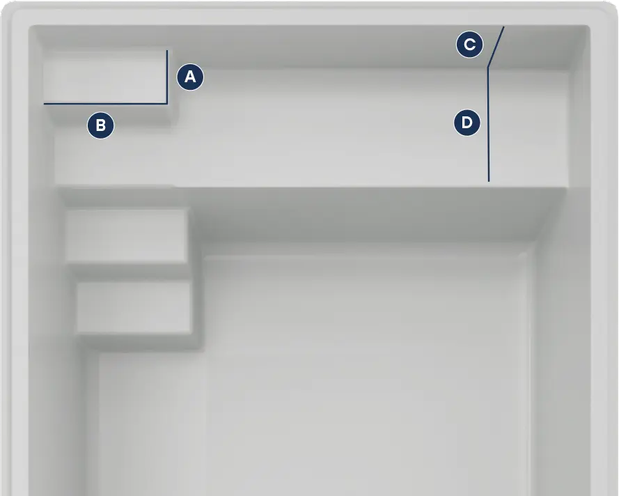 Dank des flachen Bodens eignet sich der Fidji 8 perfekt für Familien mit Kindern oder für alle, die es beim Baden lieber ruhig angehen lassen. Die durchdachte Form sorgt für eine sichere Nutzung und hohen Komfort – ganz ohne tiefen Bereich.