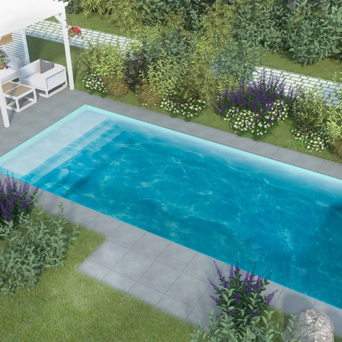 Andere Beckengrößen der Serie GFK Pool mit Flachboden